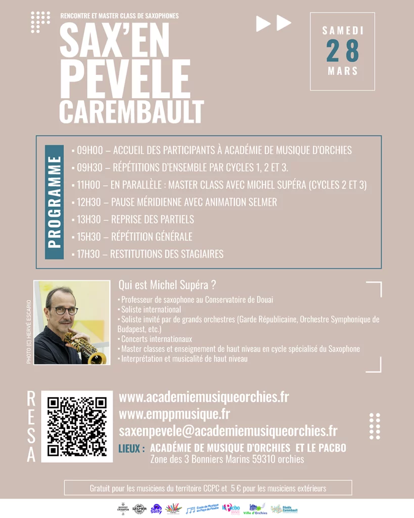 l’Académie de musique d’Orchies et l’École de musique en Pays de Pévèle organisent une journée consacrée au saxophone.